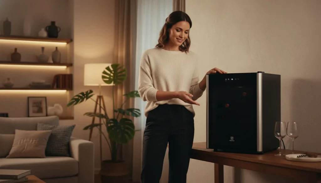 Outro fator essencial é o espaço disponível em casa. Adegas compactas são mais versáteis para apartamentos, enquanto modelos maiores exigem planejamento para instalação. Verifique sempre as dimensões e permita circulação de ar ao redor do aparelho.