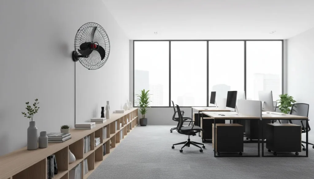 Outro aspecto fundamental é verificar o tipo de parede: paredes de alvenaria aceitam melhor a fixação direta, enquanto paredes de drywall ou divisórias leves podem precisar de reforço estrutural adicional. Sempre siga as orientações do fabricante do ventilador e confira se o suporte possui certificação ou recomendações técnicas específicas.