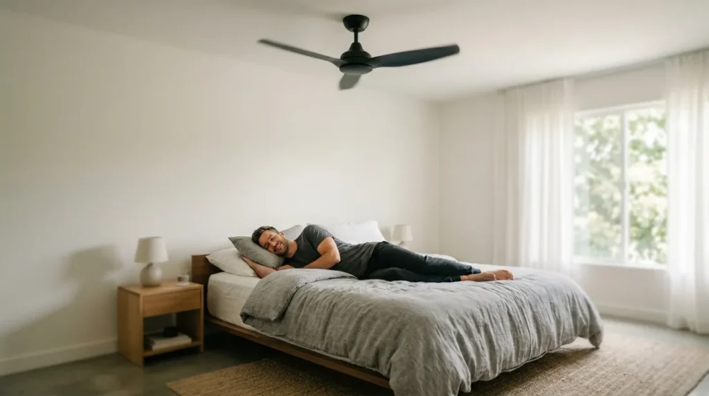 O ventilador de teto é indicado para ambientes que precisam de circulação contínua de ar, como quartos ou salas, especialmente em regiões quentes e secas. Ele é eficiente para quem busca refrescar o ambiente gastando pouca energia e sem alterar a umidade do ar.